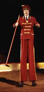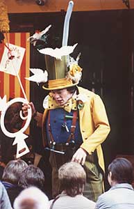 clowns and stiltwalkers. Also fairgrounds and carnivals and he can provide reference