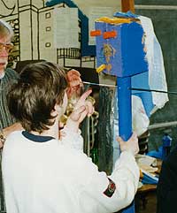 puppeteer Peter Charlton he undertakes puppet making workshops in schools.